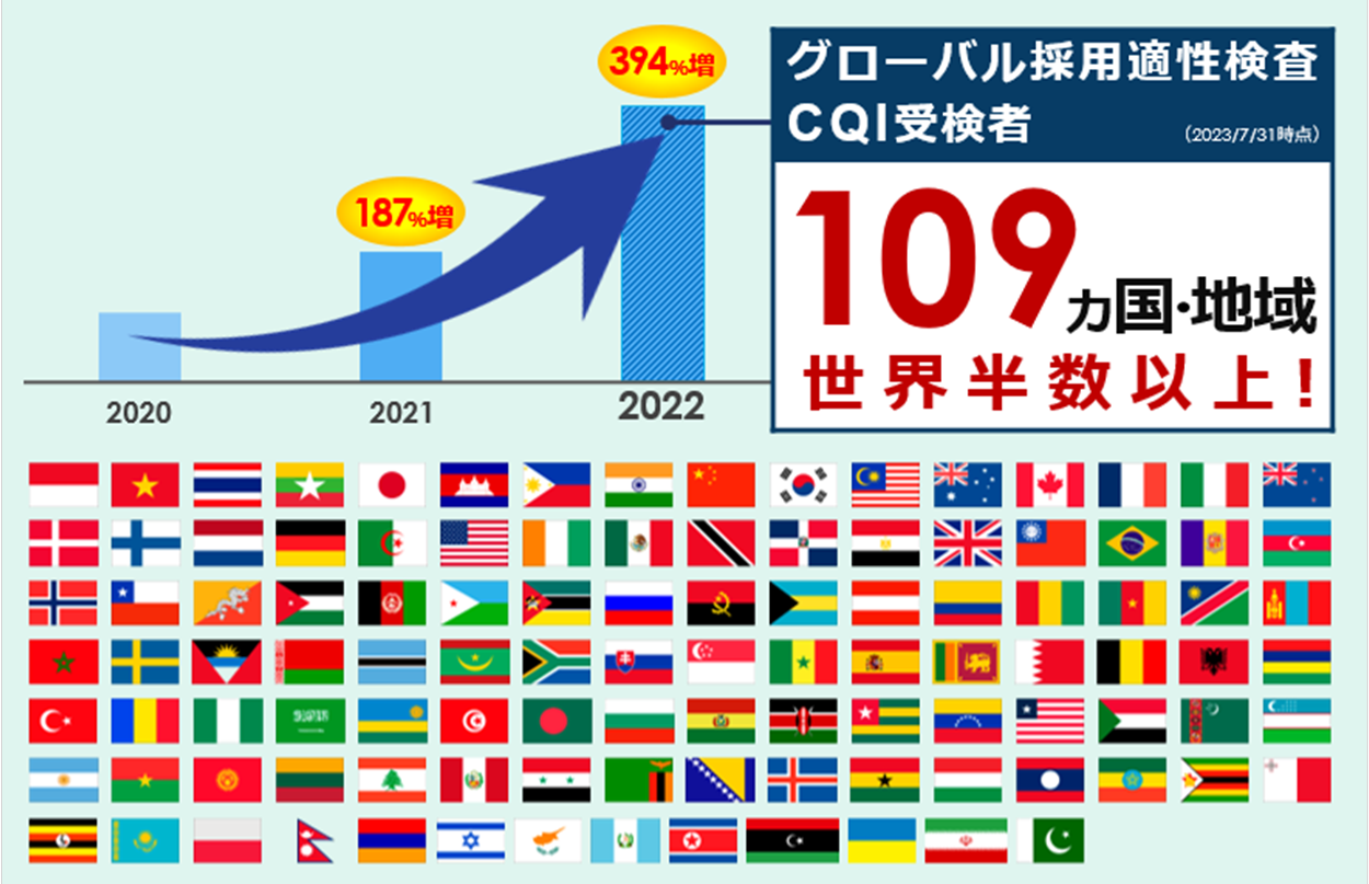エイムソウル、外国人採用に特化した適性検査「CQI」受検実績が109カ国・地域(世界の半数強)を突破!