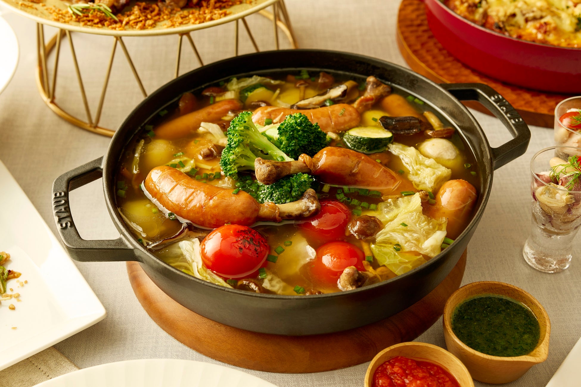 世界の鍋料理をグランドエールオリジナルに仕上げた「鱈とジャガイモのゴルゴンゾーラ煮」や「骨付きポークソーセージのボリートミスト」(1~2月のディナー限定)、クリスマスが待ち遠しくなる「シュトーレン」(12月限定)などをラインナップ。