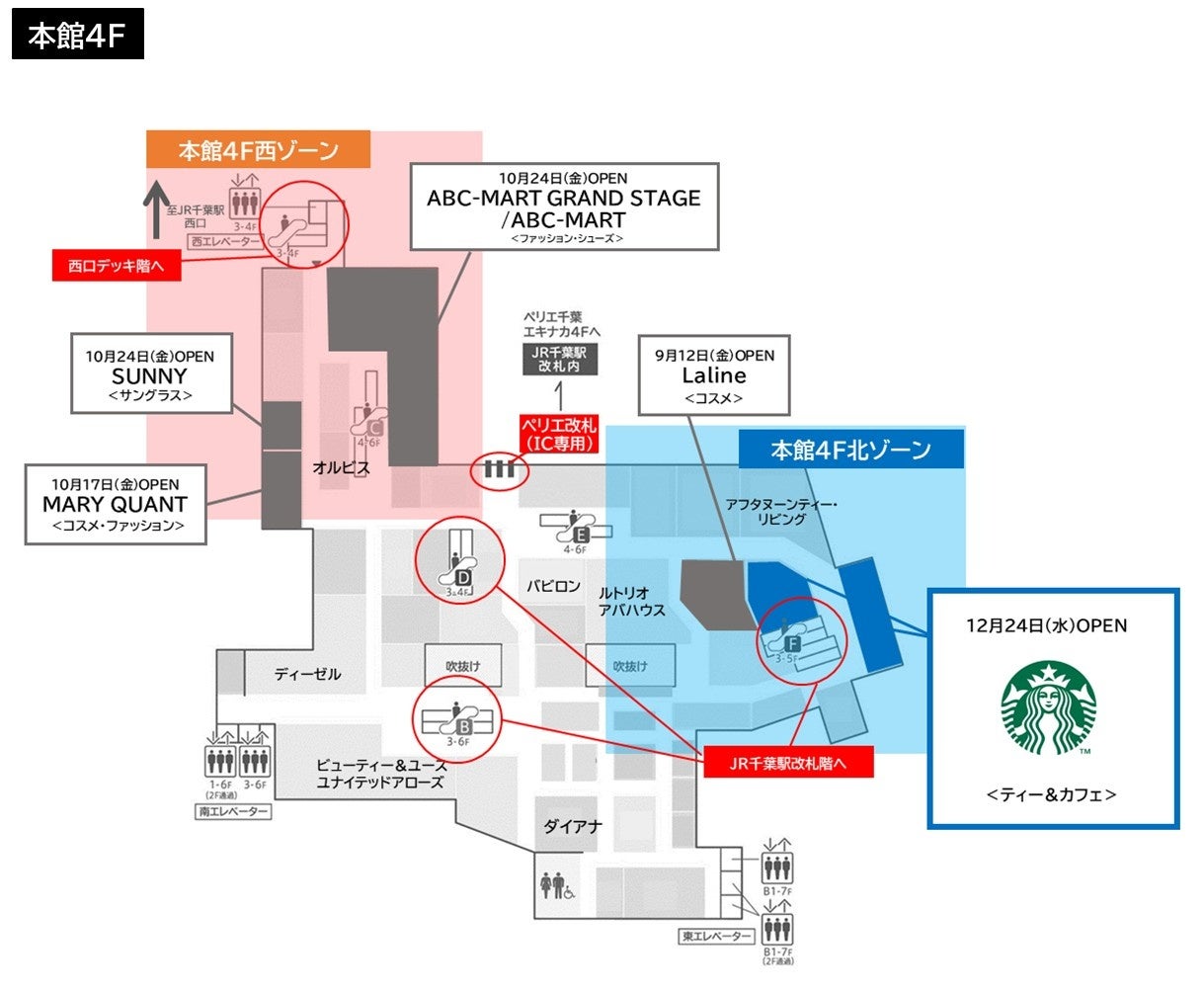 JR千葉駅中央改札にほど近いエントランスに直結する本館4F北ゾーンには、千葉県唯一のティービバレッジに特化したティーを楽しむ店舗「スターバックス(ティー&カフェ)」(2025年12月24日)、再開発が進む千葉市中心市街地との結節点であるストリート1には、全国3店舗目となるパンとカフェが融合したカフェ業態「TruffleBAKERY(トリュフベーカリー)」(2026年1月3日)がオープンします。