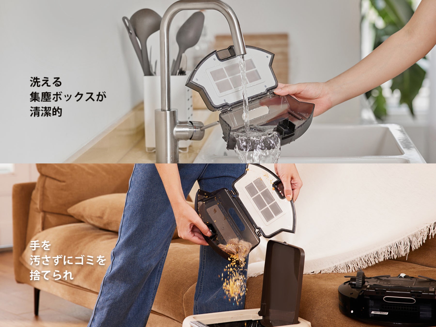 最大3000Paの吸引力で、300mlの大容量水タンクと500ml ビッグダストボックスを組み合わせ、部屋を高精度でマッピングして効率的に掃除できます。