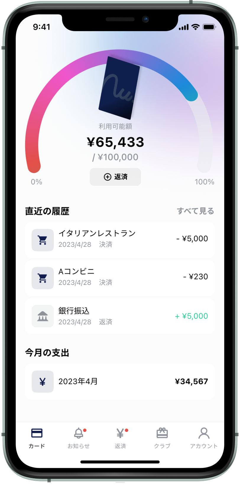 アプリ起動時の生体認証や、不正利用防止機能など安全性はもちろん、クレジットカードを初めて利用する方も安心して利用できるよう、好きなタイミングで可能な返済(※2)やスマホベースのUIを特徴としています。