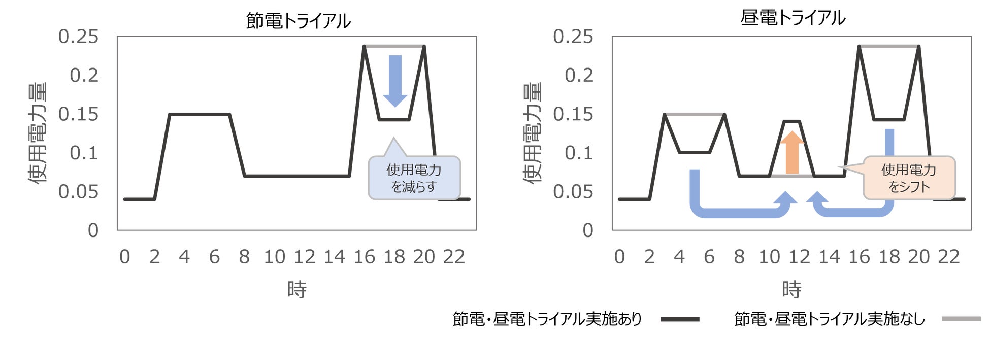 「昼電トライアル」とは、主に供給が過剰になる昼において、それ以外の時間帯に行っている電力使用をシフトすることにより、昼における電力使用量の割合を増やす取り組みです。需給バランスの安定化に加え、へーベルハウスオーナー様から買い取った太陽光発電由来の電力を有効活用することにも繋がります。