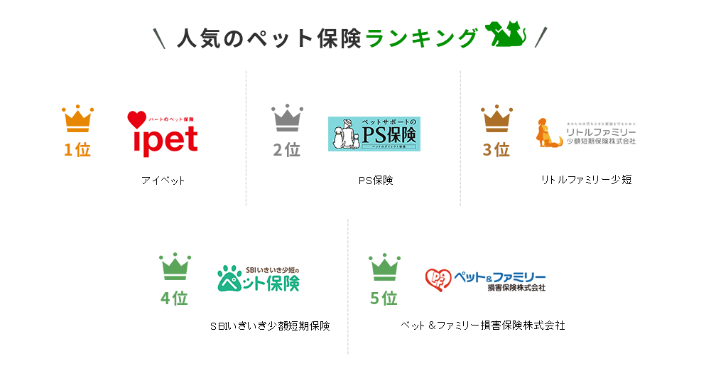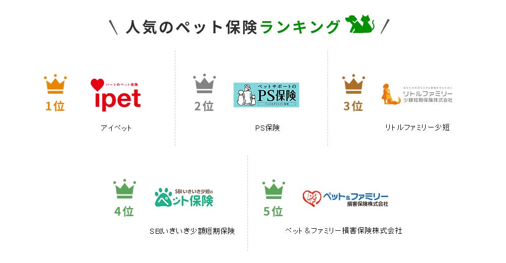このページでは、当社運営ペット保険メディア全体での契約件数に基づいたランキングをご紹介しています。