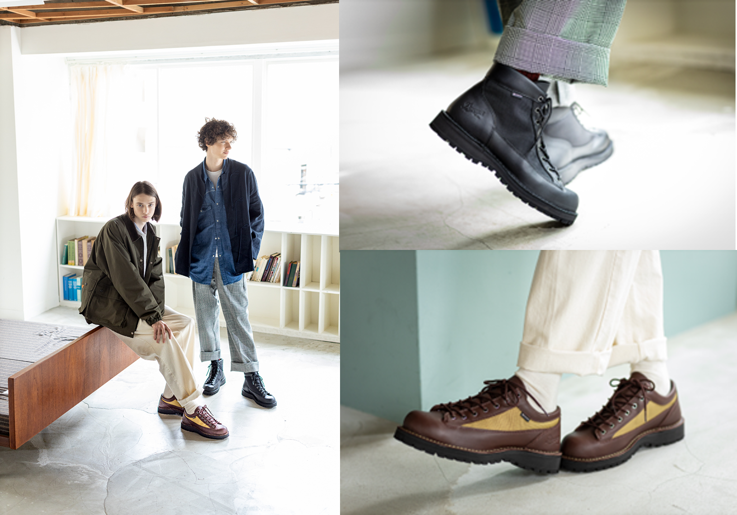 カラー:(左から)D.BROWN/BEIGE,BLACK/BLACK, N.WHEAT/BEIGE