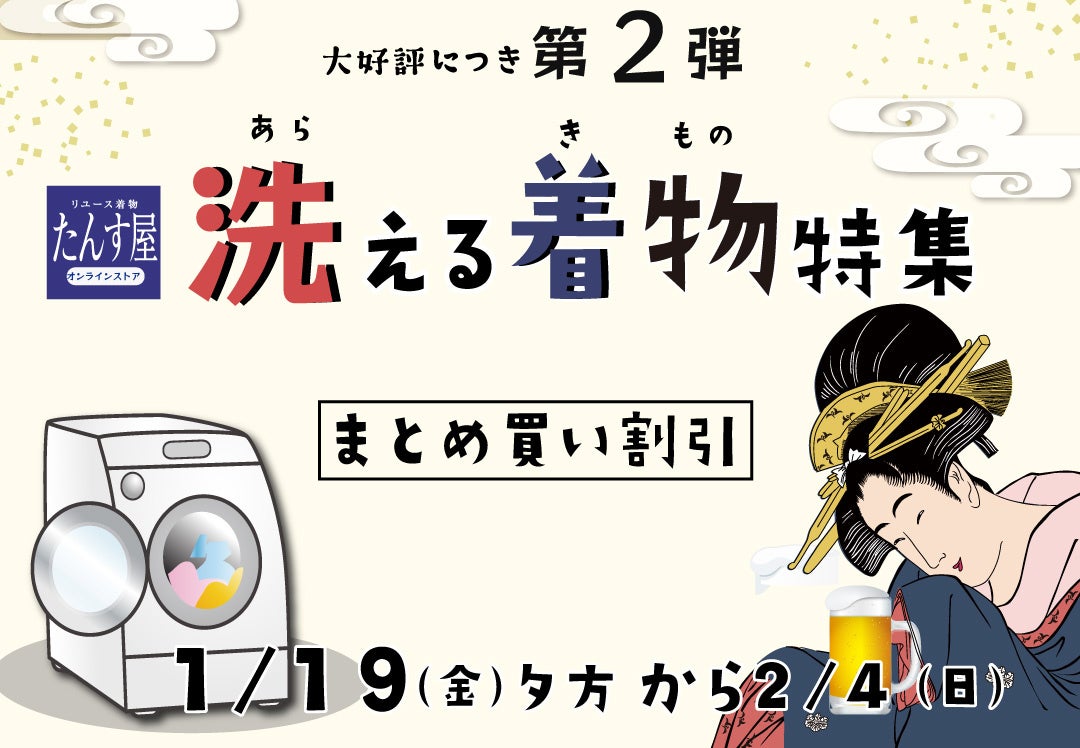 リユース着物「たんす屋オンラインストア」では1月19日(金)~2月4日(日)の期間「洗える着物特集第二弾」を開催中です。