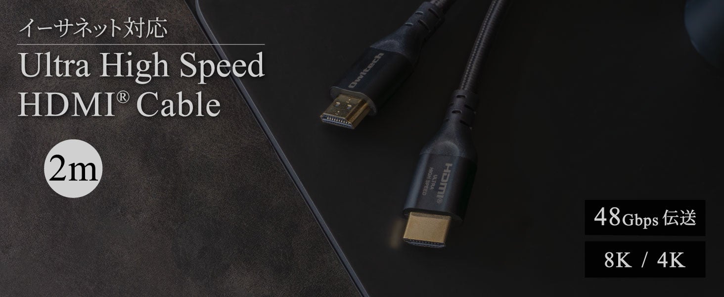 「Ultra High Speed HDMI® Cable認証」を取得しているのでイーサネットに対応。