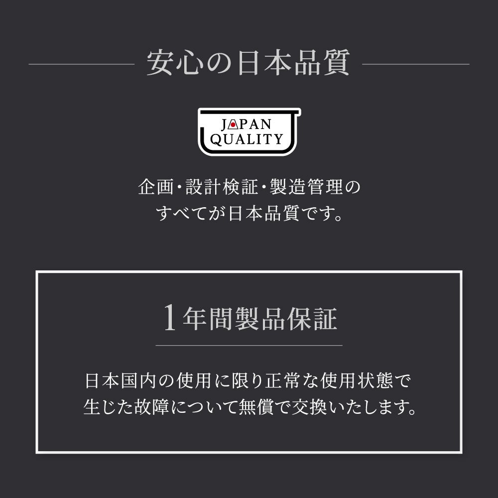 お客様に安心してお使いいただけるように、日本国内での正常な使用で生じた不具合や故障については1年間を製品保証期間とし、無償で交換対応致します。