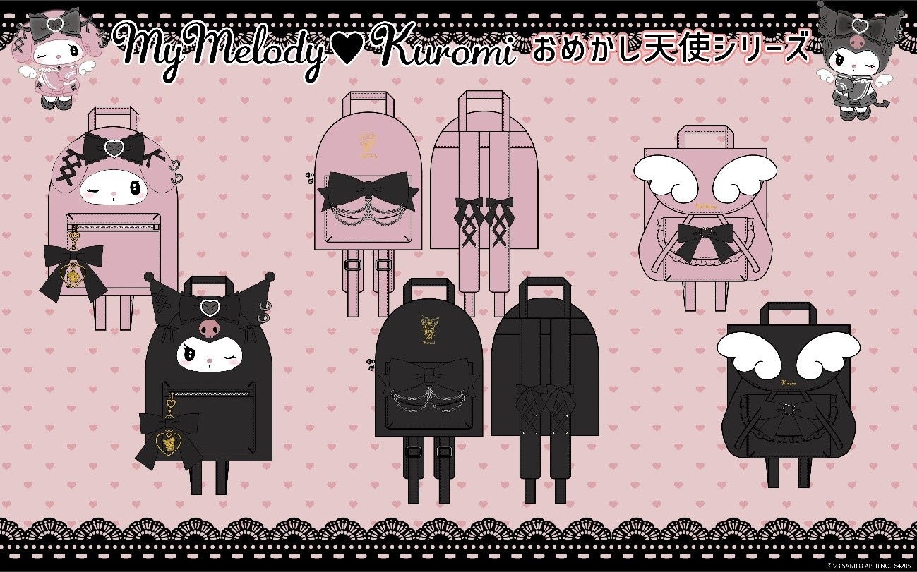 フォルムが可愛い巾着タイプのミニリュックサック。天使の羽がおめかししたマイメロディ・クロミになった気分にさせてくれます♡