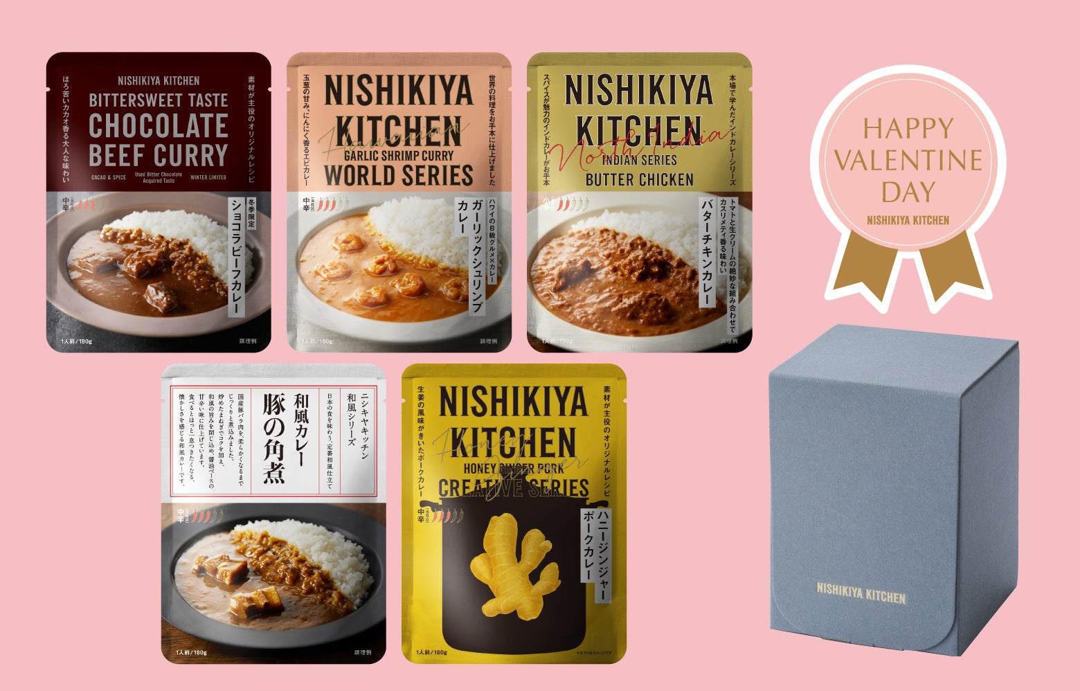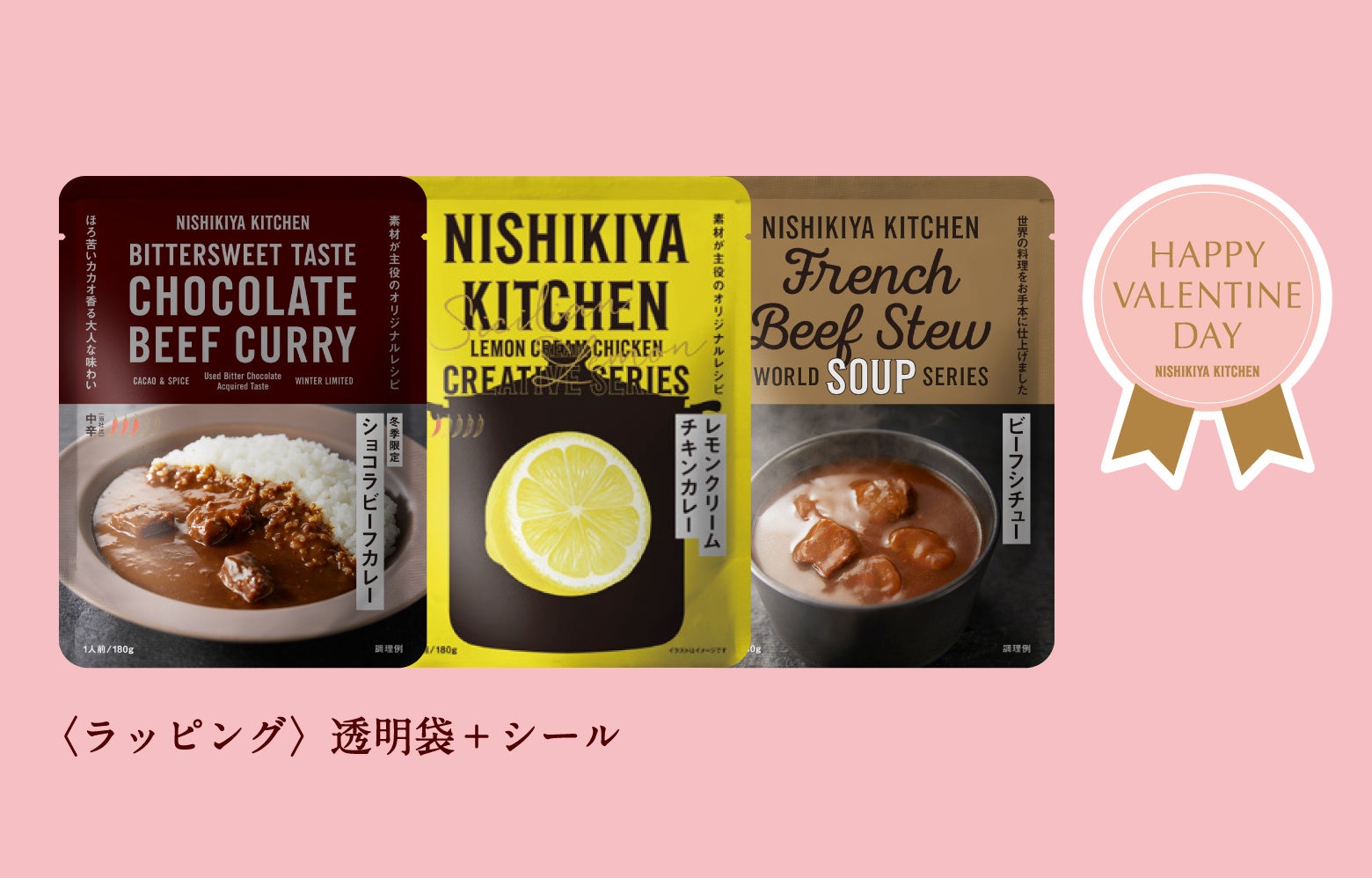 公式オンラインショップと実店舗では、ショコラビーフカレーをはじめ、ニシキヤキッチンのおすすめ商品を厳選した「バレンタインおすすめセット」を販売。バレンタイン専用のラッピングも可能で大切な人への贈り物にぴったりです。