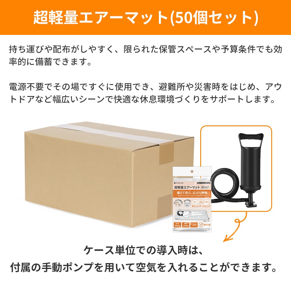 防災からアウトドアまで、快適な眠りを実現。超軽量エアーマット(50個セット)新発売のお知らせ