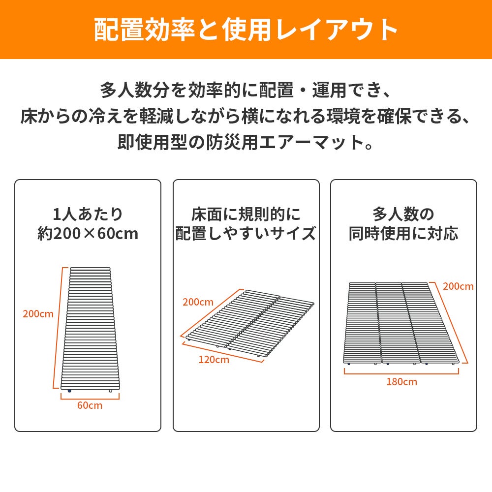 軽量・省スペース設計により、多人数分の備蓄・配備を効率化できる防災用エアーマット