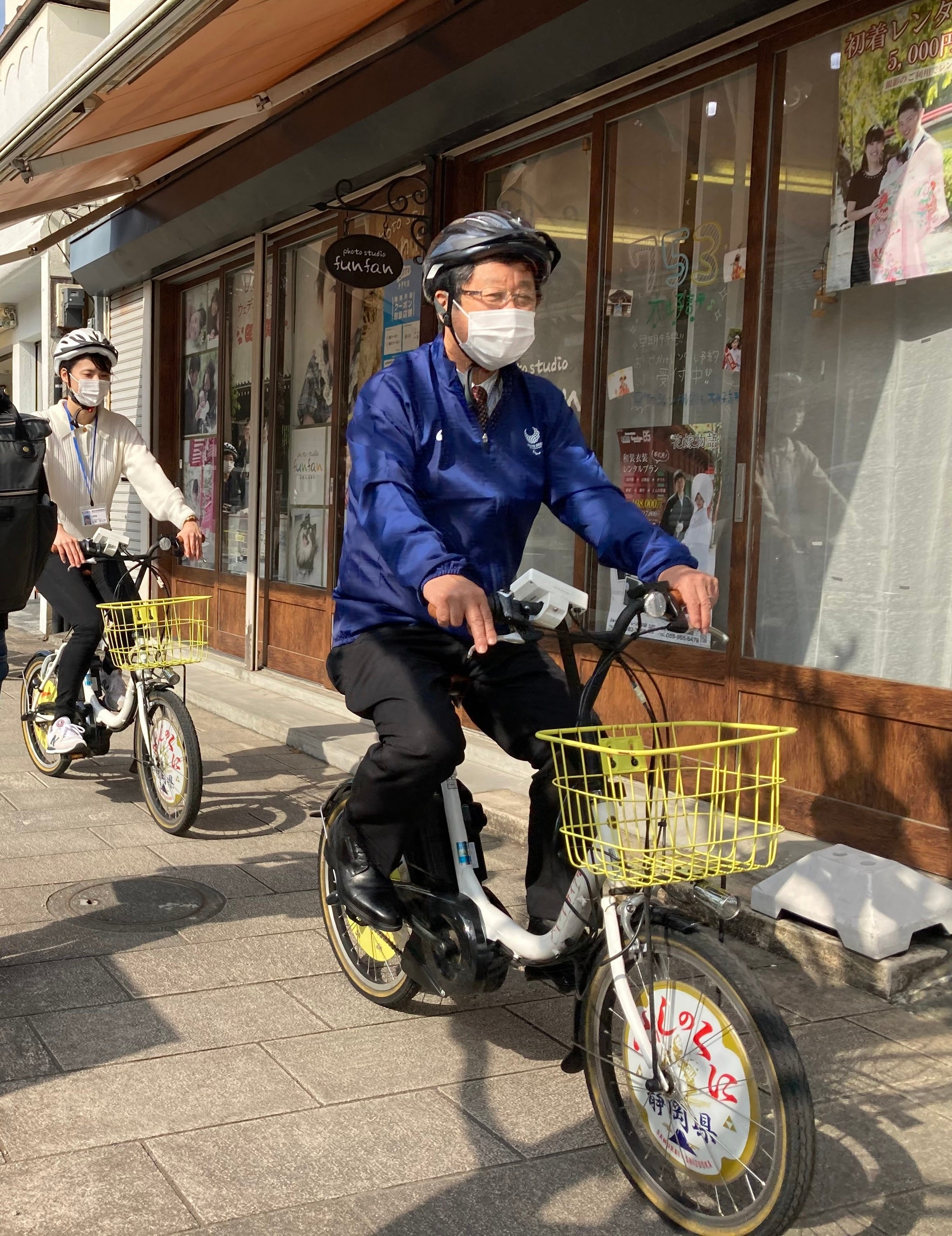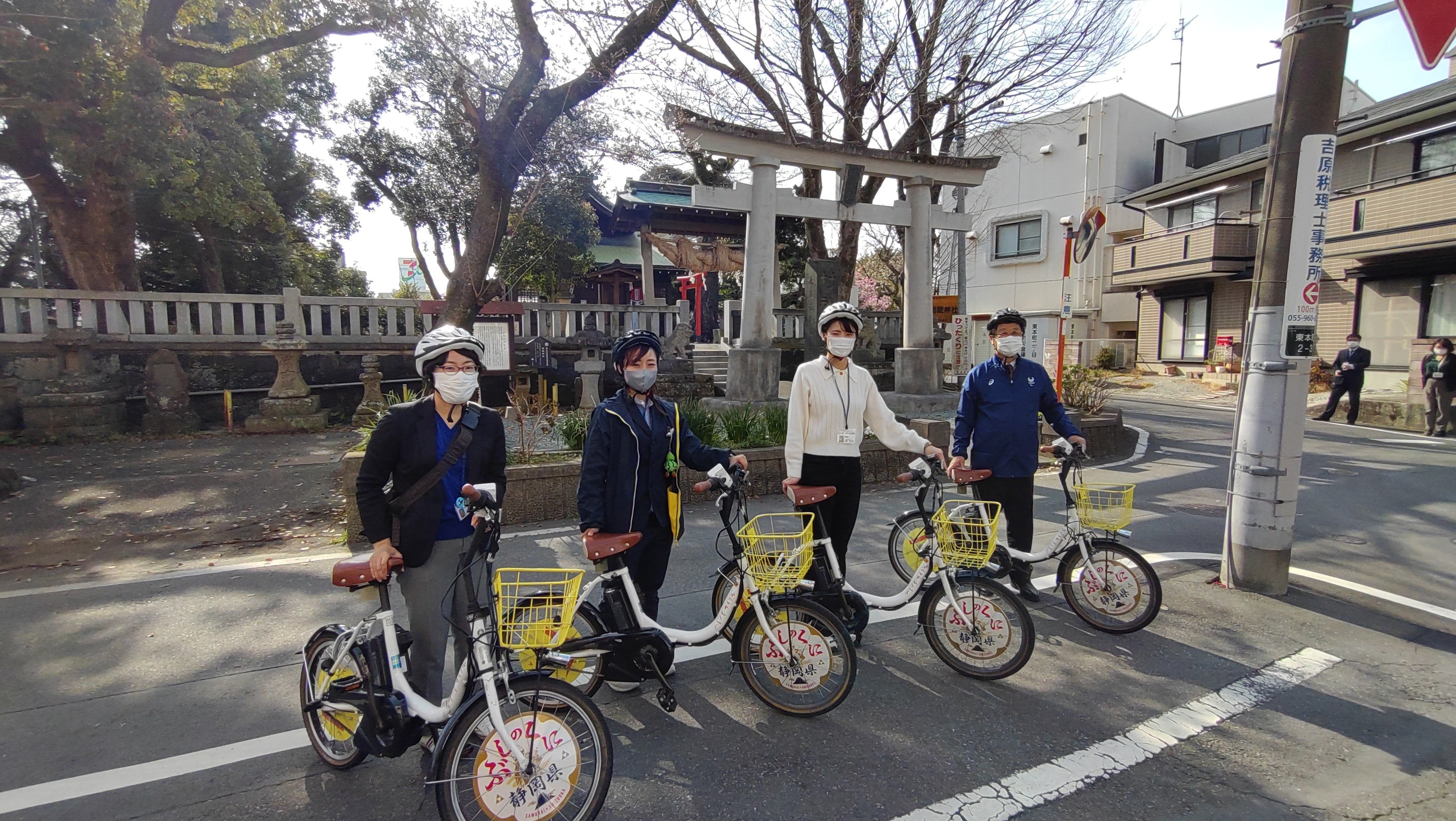 令和4年3月25日(金)、加和太建設株式会社が運営する「ハレノヒサイクル」でのラッピング自転車レンタル開始時に、地元の三島市を含む3者で周辺のゆかりの地への試走を行いました。