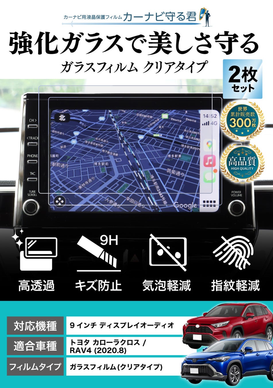 トヨタ カローラクロス / RAV4 ディスプレイオーディオ 専用ガラスフィルムです。貼りやすい固定用シール付きで、お得な2枚セット。カスタムパーツのお供に