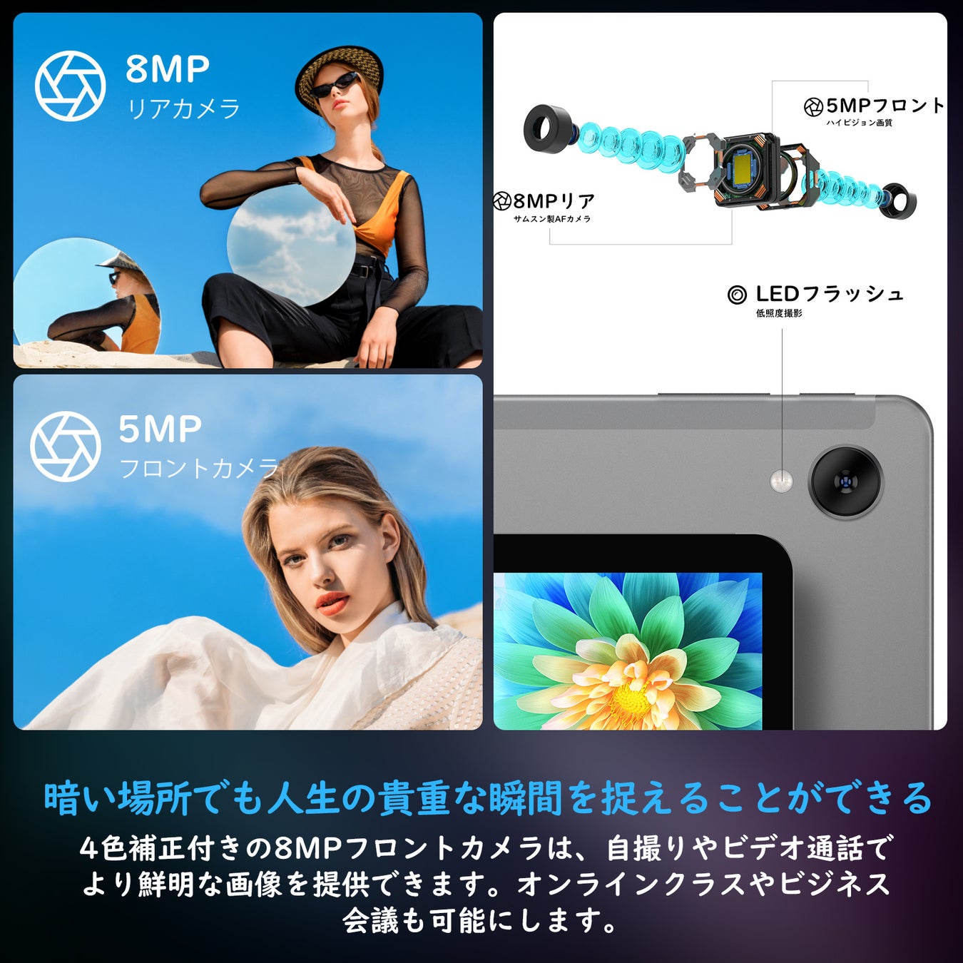 4GB RAMで、マルチタスクやアプリの切り替えもスムーズに。64GBのストレージスペースと1TBのMicro SDカードを追加して、データを整理することができます。