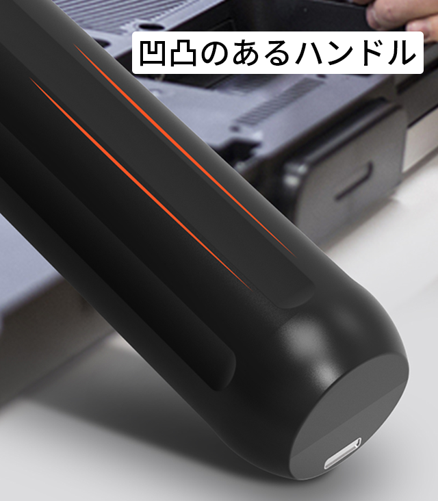 さらに、使用中に手や指が滑らないようにするため、凹凸のあるハンドル設計に仕上げました。