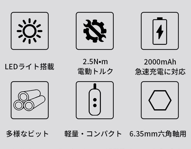 20の多機能ビット、締めるときのトルクは最大2.5N.mにまで達し、作業の時間を大幅に短縮できます。