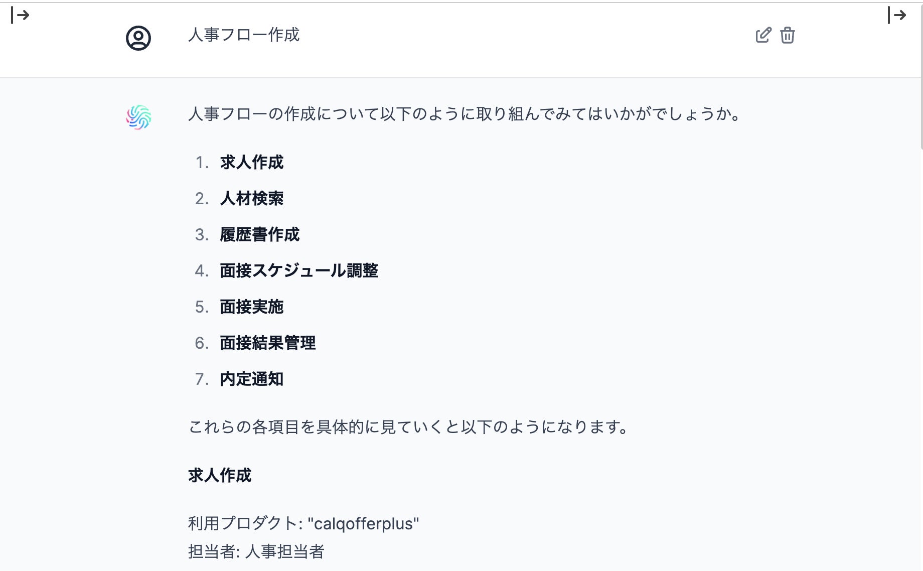 人事フロー作成、営業フロー作成。など一言でAIがワークフローを提案します。