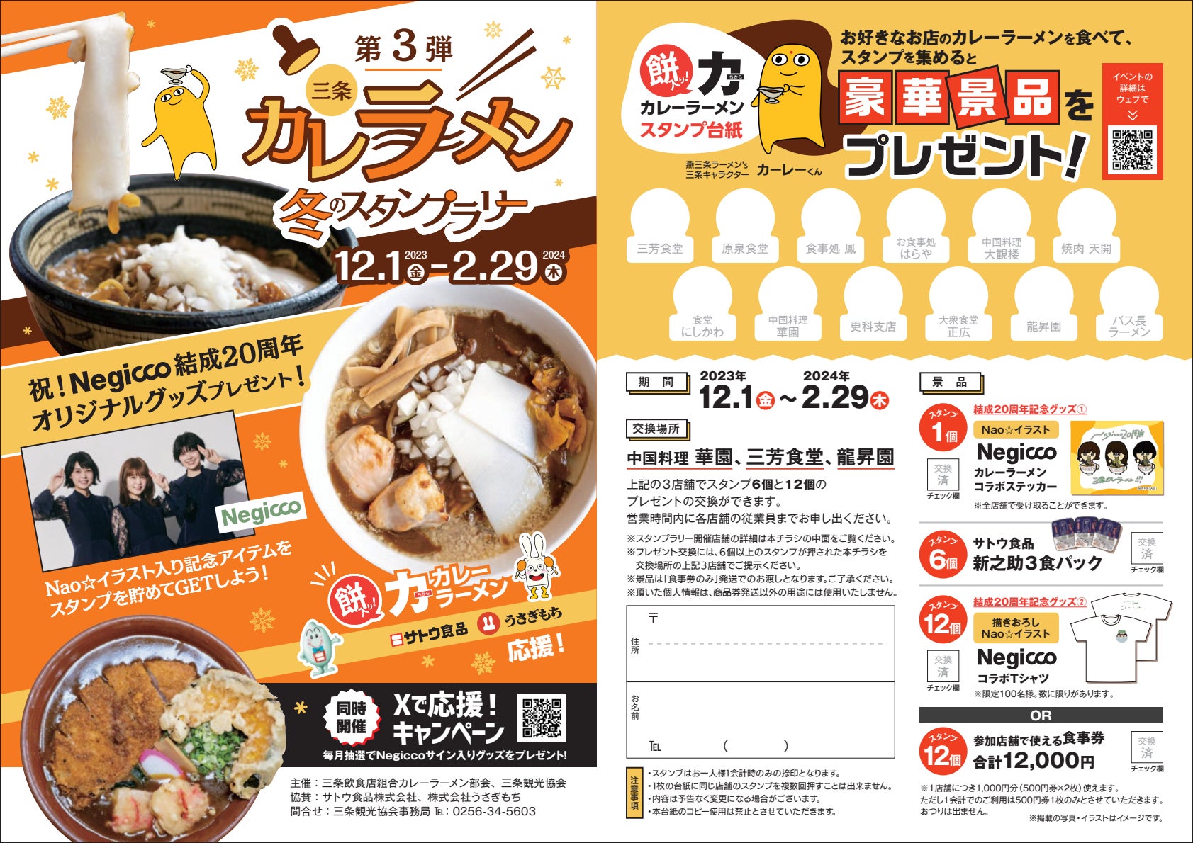 「三条カレーラーメン 冬のスタンプラリー第3弾」及び「Negicco×三条カレーラーメン X(旧Twitter)ハッシュタグキャンペーン」開催決定
