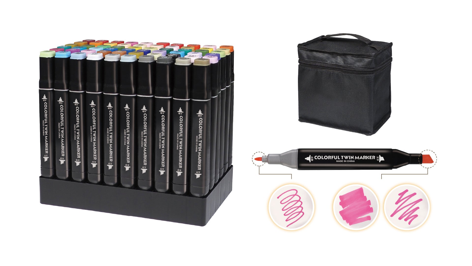 特徴:見てるだけでワクワクする♪カラフルマーカー!ボリューミーな60本セット!カラーチップ付きのキャップだから、一発で使いたい色がわかる!ツインヘッドで、太字も細字もかけるから、表現の幅がグーンっと広がる♪お絵描きやお手紙に使ってね!