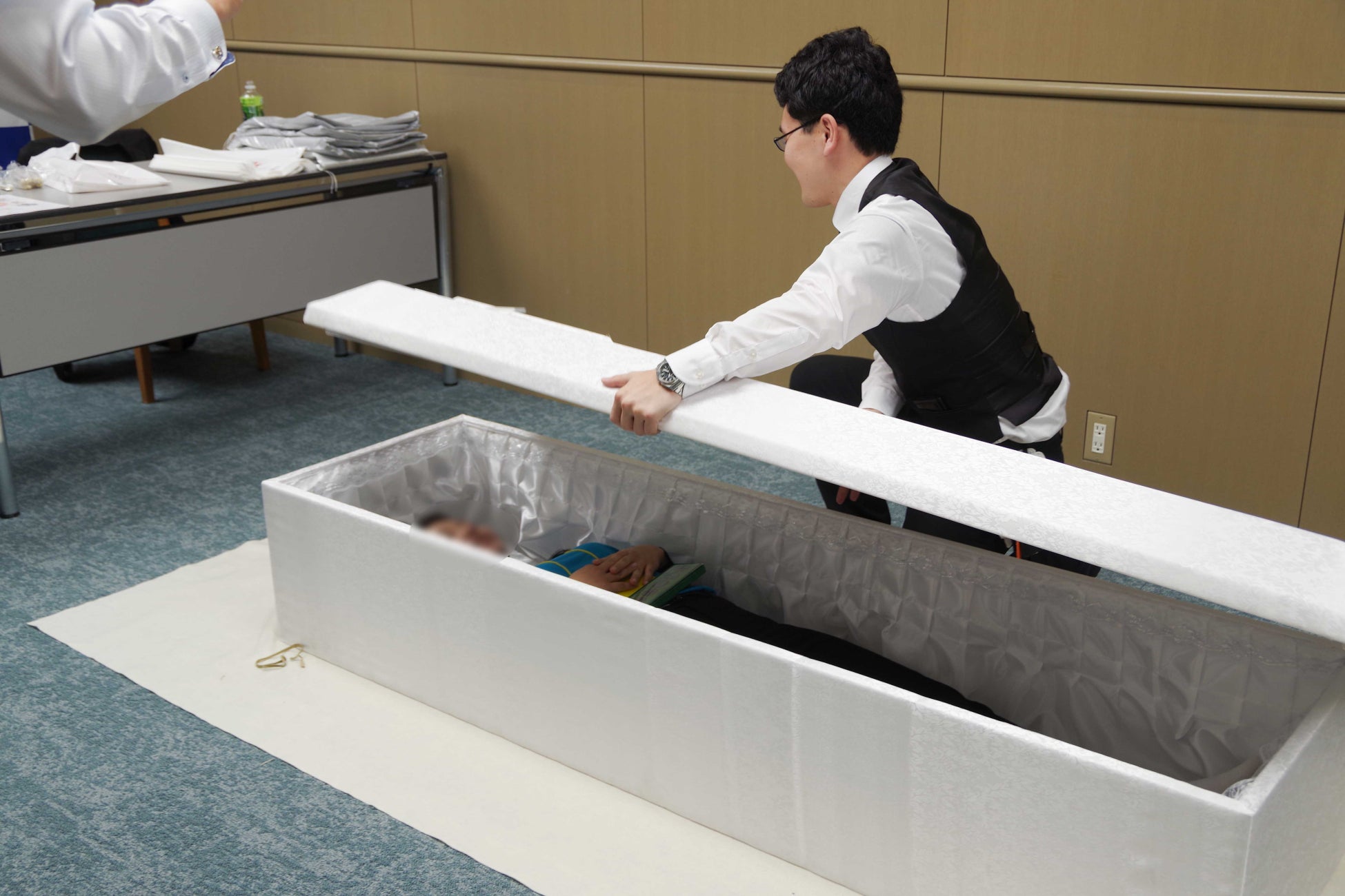 また、数分棺の蓋を閉じたままの状態にしてほしいとおっしゃる参加者もおり、日々医療にかかわる方々にとって、貴重な体験をしていただけたかと思います。
