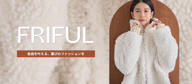 「FRIFUL」は、”自由を叶える、喜びのファッションを”をブランドタグラインに掲げ、どんなシーンでも、どんな気分でも、ぴったりのアイテムがみつかる日本人に向け開発されたファッションブランドです。