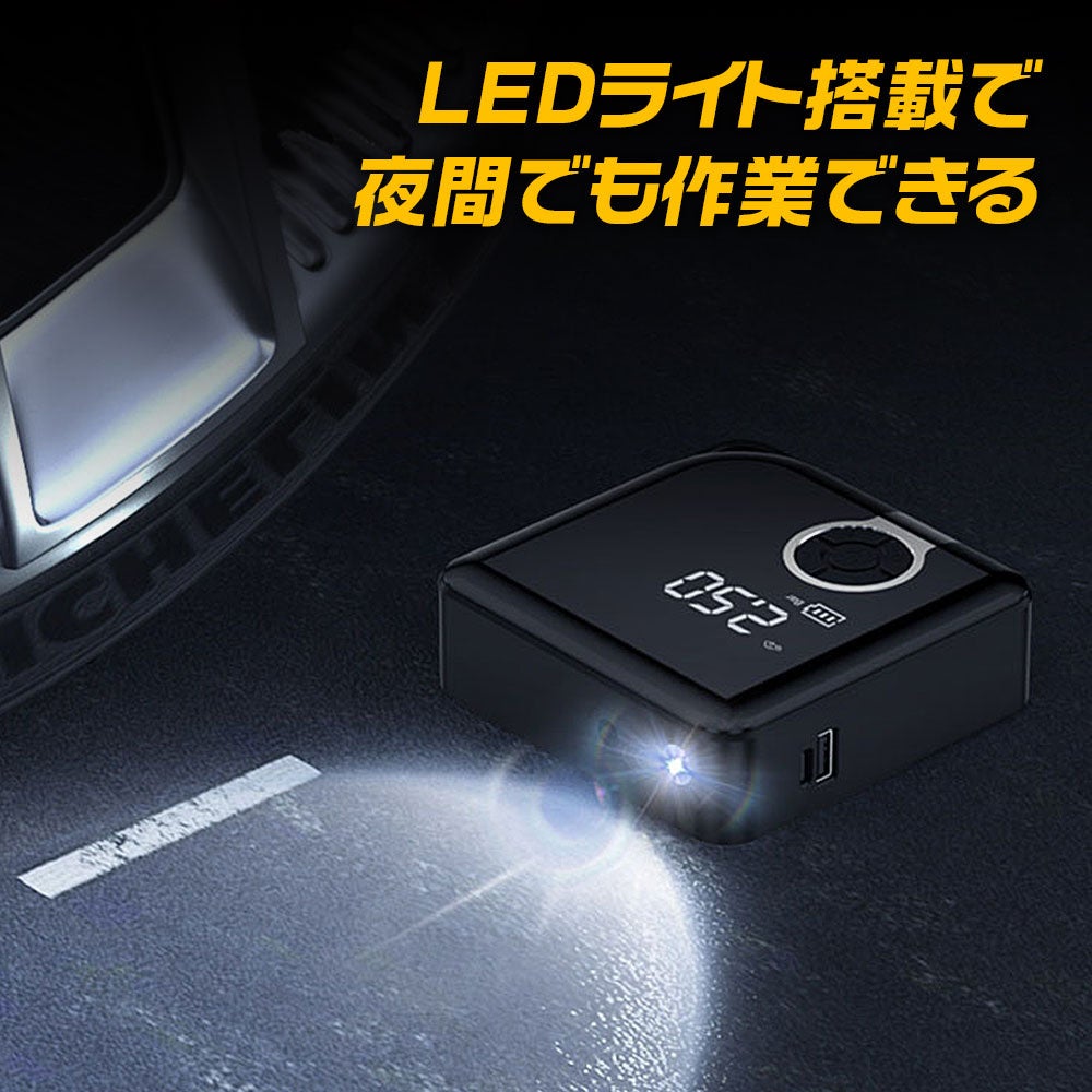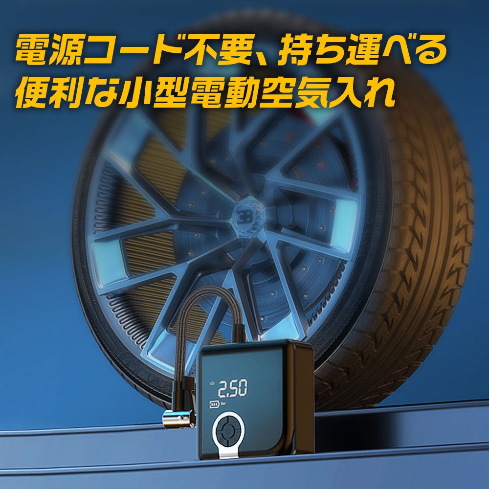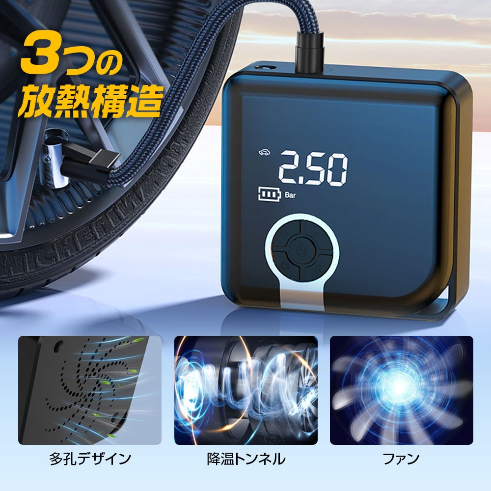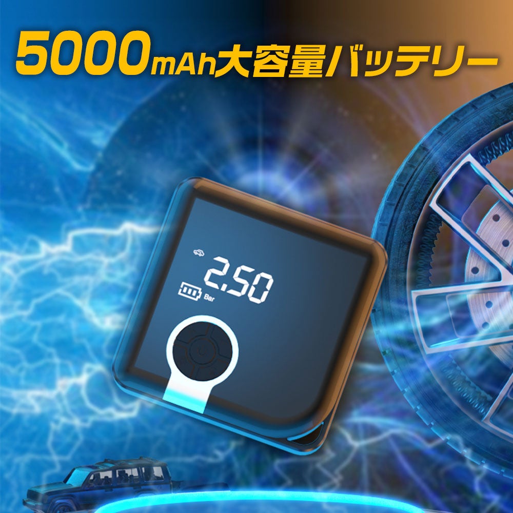 5000mAh大容量バッテリーなので一度の充電で自動車用タイヤに充填可能