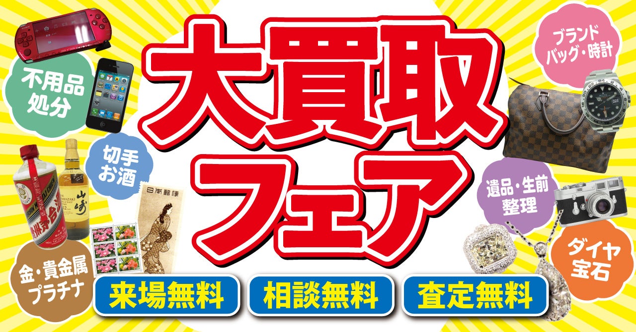 あなたの身近な場所で出張買取査定!全国約700店舗展開の「買取大吉」、「大買取フェア」を全国各地で開催!