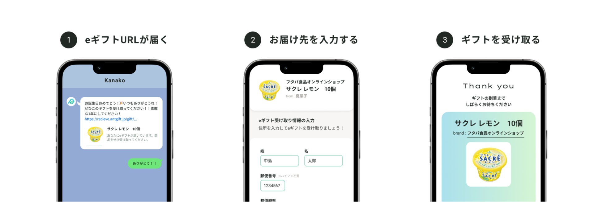 eギフトURLから住所を入力いただくだけで対象商品が届きます