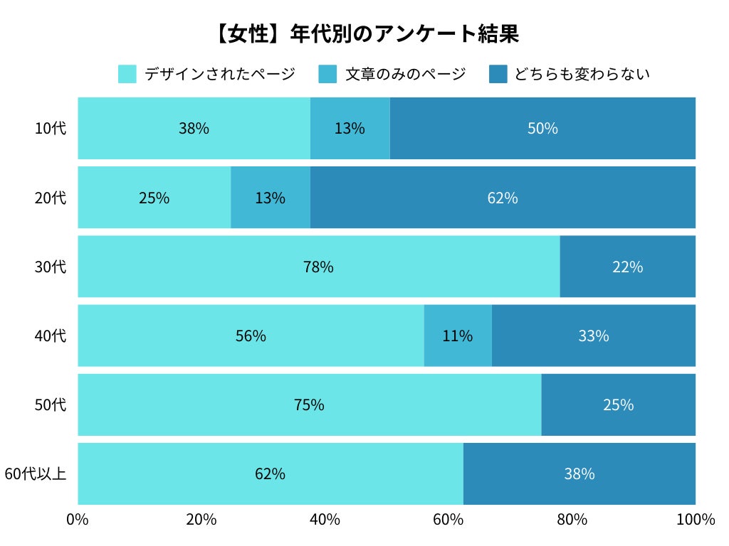 30代女性は「デザインされたページ」の影響が大きく、78%が支持。