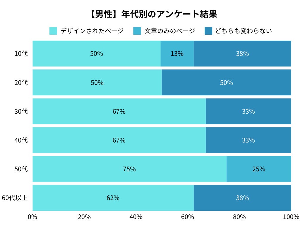 男性も30代以上で「デザインされたページ」の支持率が大きく上昇。