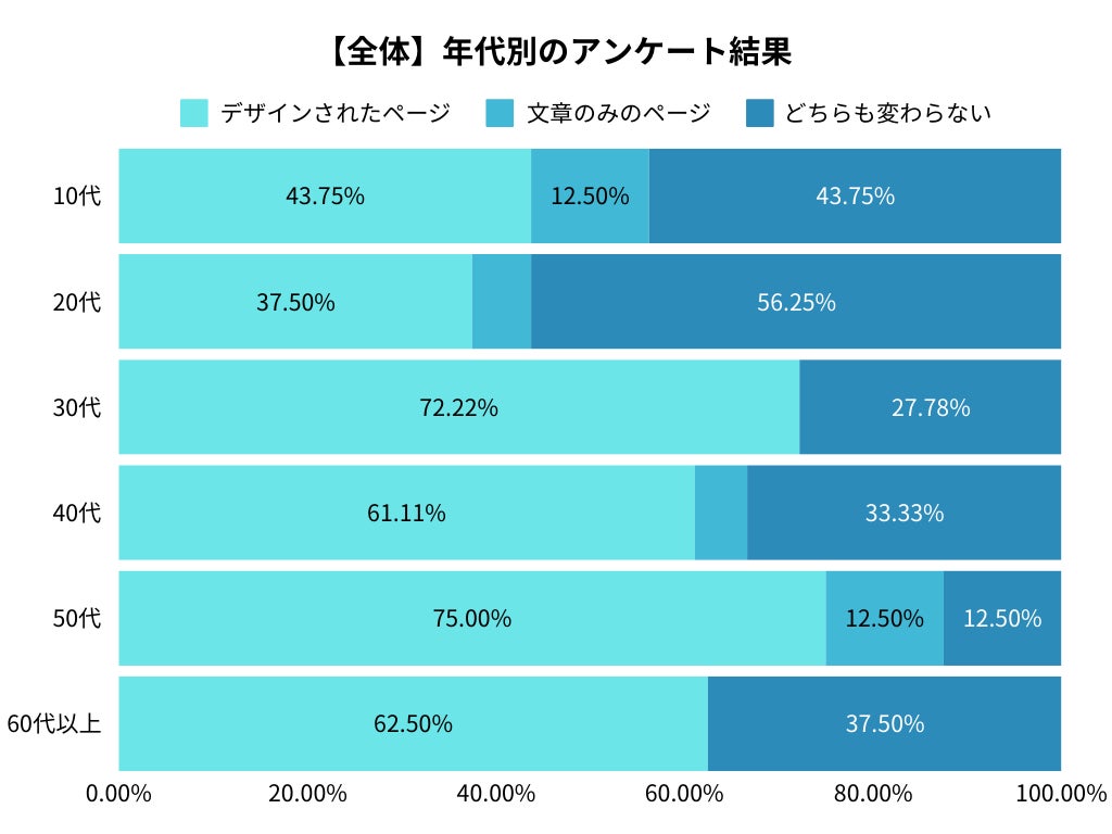 30代以上になると、「デザインされたページ」の支持率が一気に上昇。