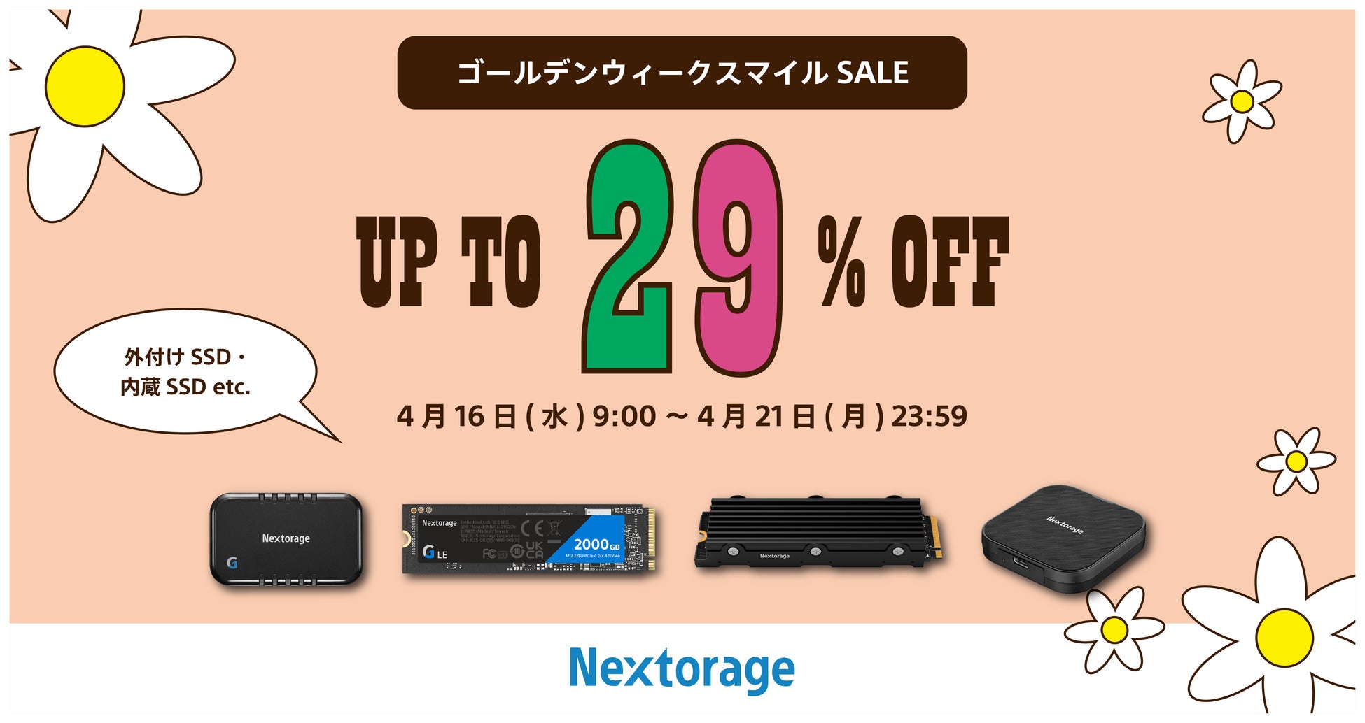 Nextorage株式会社(ネクストレージ株式会社、代表取締役:本多 克行、神奈川県川崎市)は、2025年4月16日(水) より開催される先行セール、2025年4月18日(金)より開催されるAmazon ゴールデンウィーク スマイルSALEに、SSDなどのゲーミング製品で参加することをお知らせいたします。