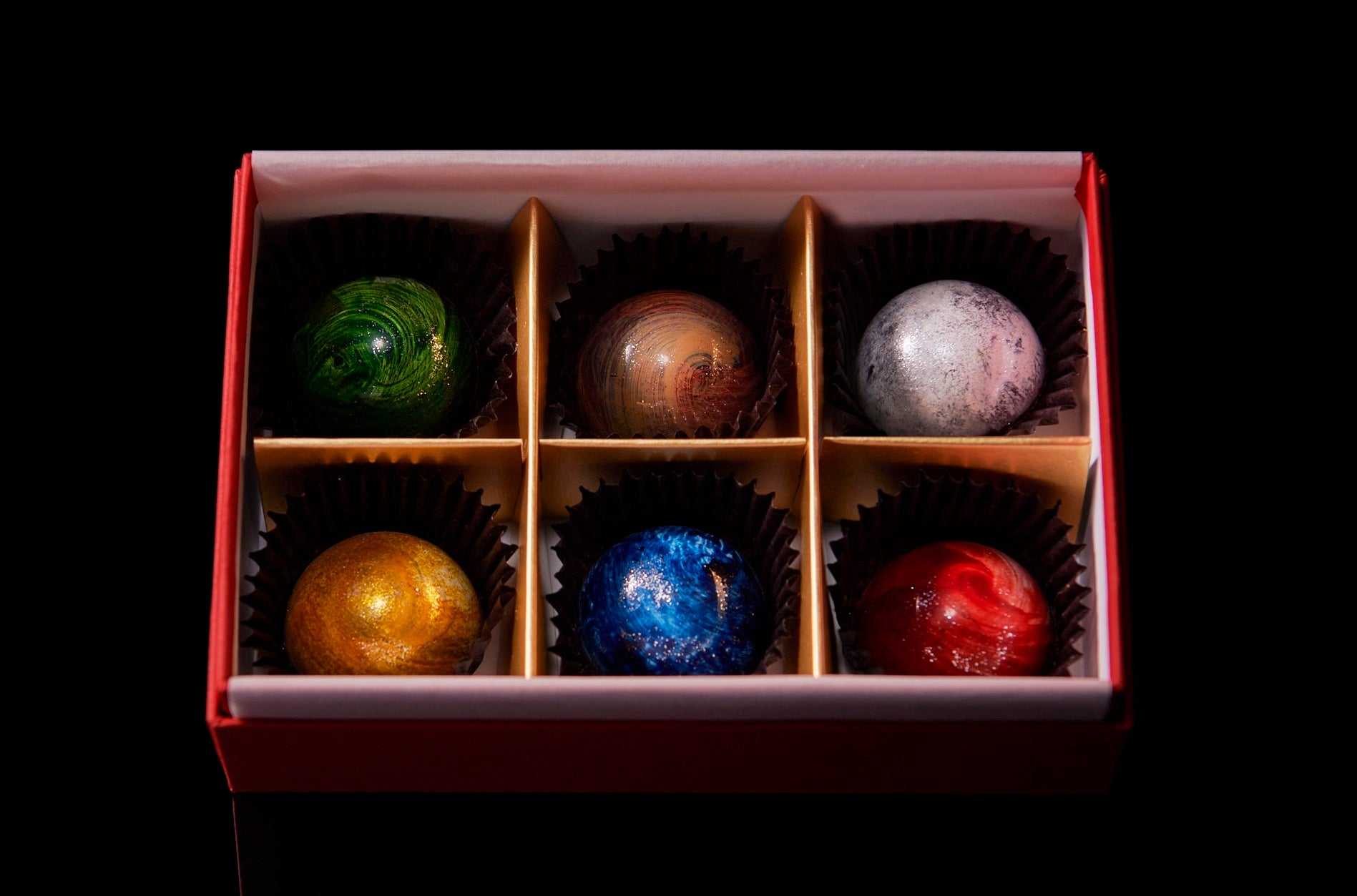 「オーラ」の持つ魅力を、色や素材でショコラ一粒一粒に表現しました。