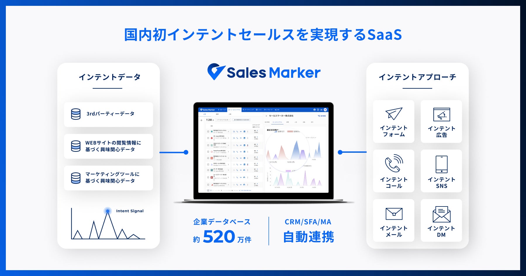 当社は、顧客の興味関心(インテント)やニーズが顕在化するタイミングを的確に捉え、顧客の検討フェーズに応じた訴求内容でアプローチする「インテントセールス」を実現するSaaSとしてSales Markerを提供してきました。