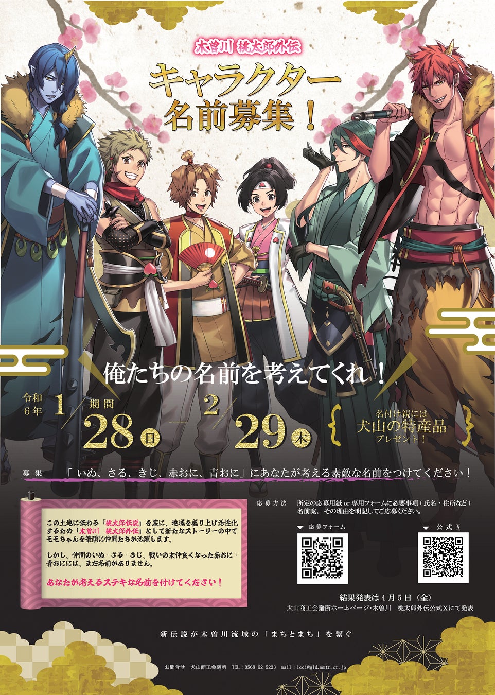結果発表:4月5日(金) 犬山商工会議所HP( https://www.inuyama-cci.or.jp/ )・公式X「ももちゃん@木曽川 桃太郎外伝( https://twitter.com/inuyamamomochan )」にて発表