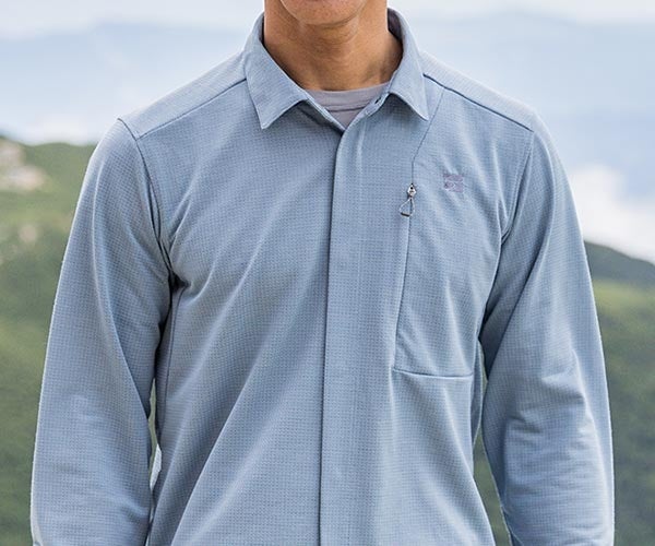 一般的なシャツに多い「布帛(織物)」ではなく「ニット(編物)」を採用することで、高い吸汗速乾性や通気性、ストレッチ性を実現。これまでにない、たくさん動き、たくさん汗をかくようなシーンでも快適な“本気のアウトドア”で使える山シャツが誕生しました。