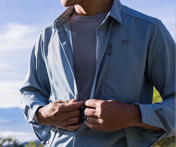 山シャツの常識をくつがえせ!ドライに羽織れる高機能山シャツ「ラミースピンニットシャツ」が新発売!|finetrack(ファイントラック)