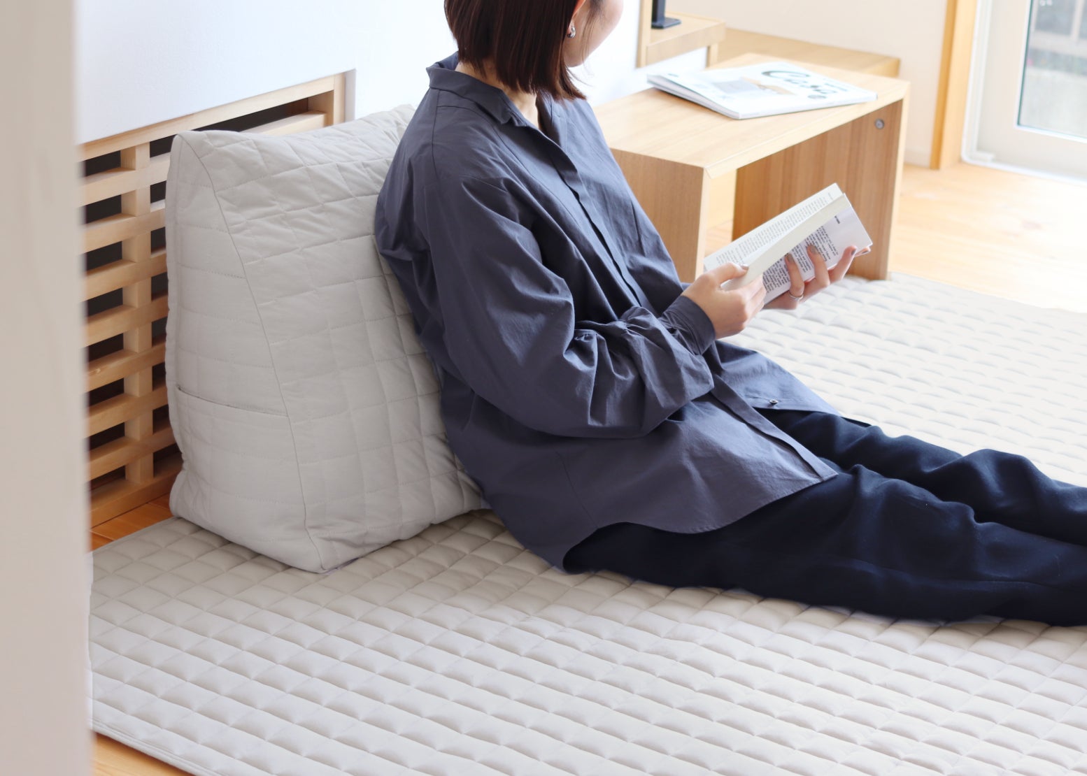ラグマットと背もたれクッション(布団収納ケース/トライアングル)を合わせてもよし。