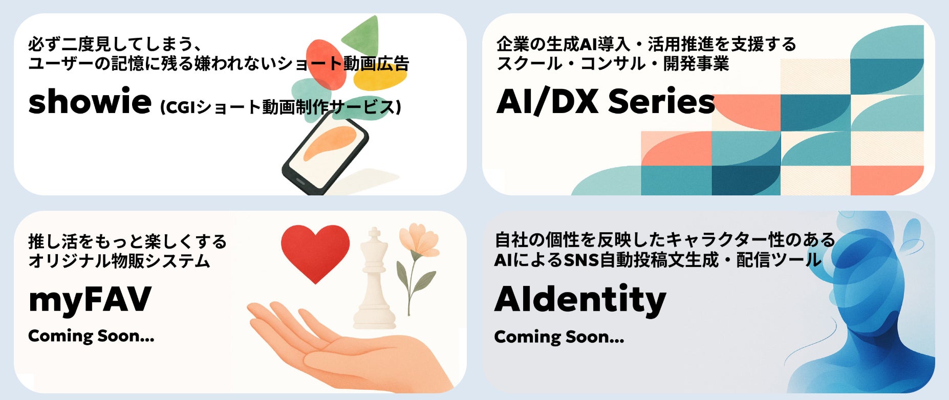 事業内容:AI/AR/VRを活用したプロモーション、サービス開発、ブランドデザイン、マーケティング支援