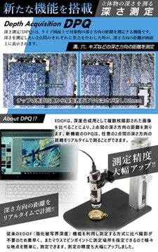 任意の2点間の深さ方向の距離をリアルタイムで測ることができます。従来のEDOF(強化被写界深度)機能を利用し測定する方式に比べ撮影が不要のため素早く、またマウスでピンポイントに測定場所を指定できるので様々な地点を簡単に、測定できます。測定の精度も大幅にアップしました。