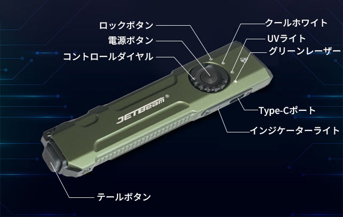 究極のEDCライト!強力なホワイト光・UV光・レーザー光に対応の3in1設計