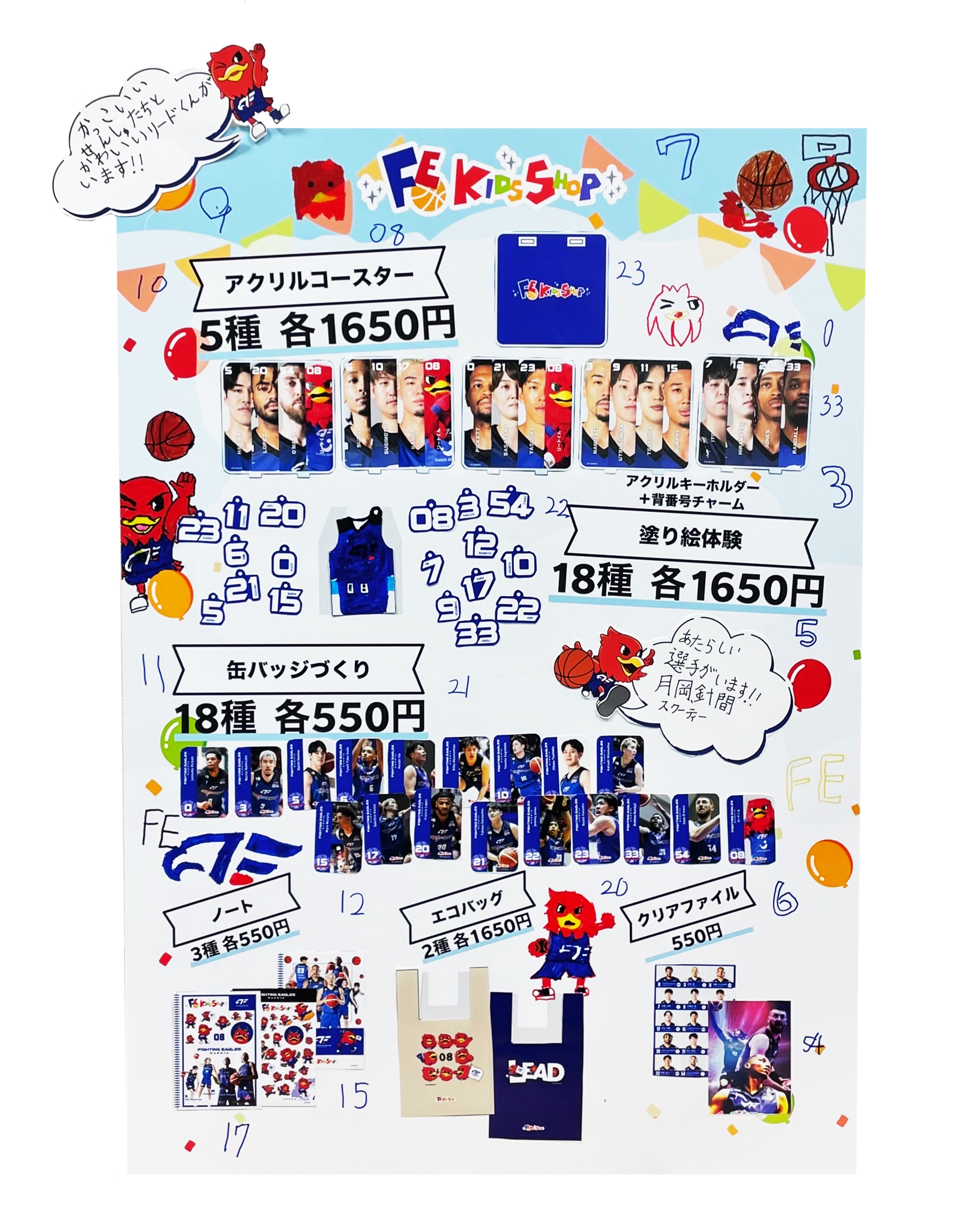 2026年4月26日(日)に行われるFE名古屋のホーム最終戦(長崎ヴェルカ戦)において、子どもたち自身が企画・デザインしたオリジナルグッズを販売する特別ブース「FE KIDS★SHOP supported by キンコーズ」を出店します。
