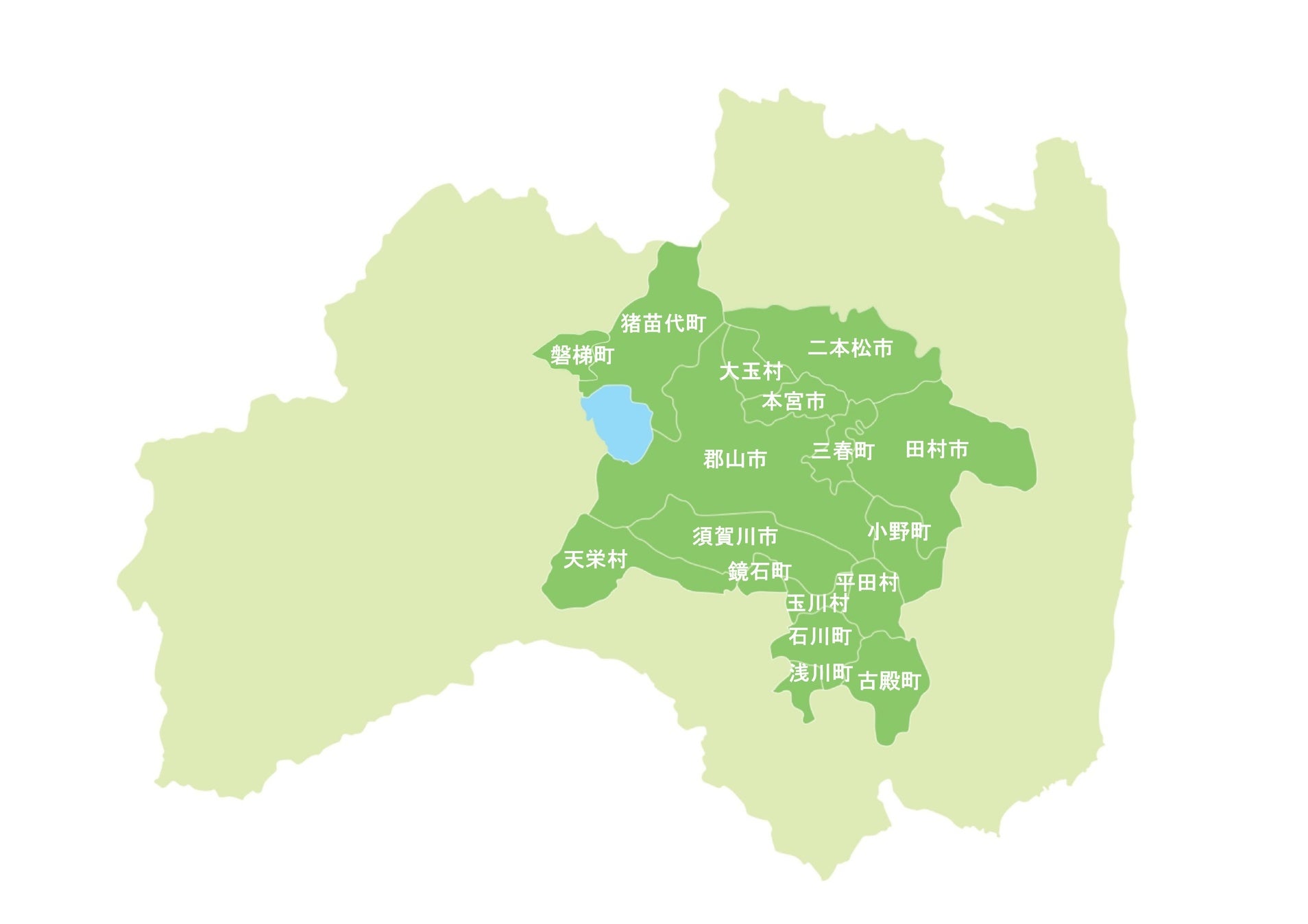 郡山市、須賀川市、二本松市、田村市、本宮市、大玉村、