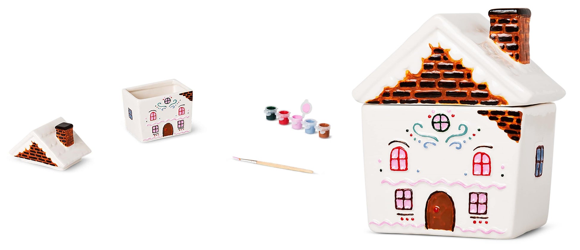 真っ白なおうちに、付属の絵の具を塗ってクリスマスハウスを完成させましょう。お菓子を入れたり、小物入れとして飾ったり、完成後の使い方は自由自在