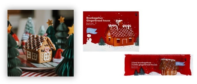 自分で組み立てるお菓子のおうち。アイシング(別売)などを使って、クッキーパーツをくっつけて作ります。