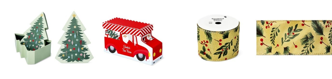 クリスマスツリー&車の形をしたギフトボックス。お菓子や小さなプレゼントを入れて渡しましょう。贈った後も飾って楽しんでもらえます。