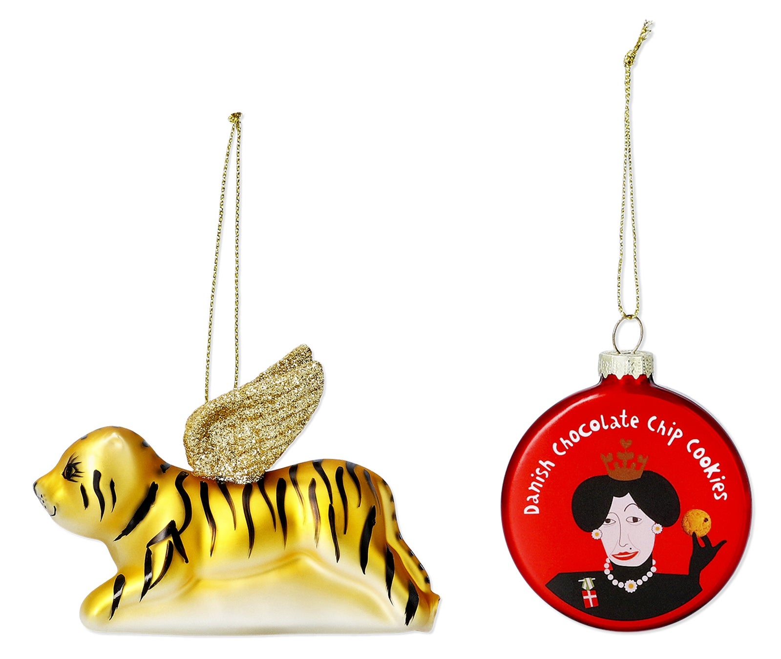 ユニークなデザインのクリスマスオーナメントがたくさん揃っています。今年は飛ぶ虎(フライングタイガー)や、女王のクッキー缶モチーフもあります。