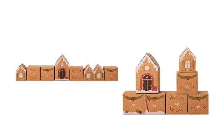 クリスマスまでのワクワクした時間を毎日楽しめる、おうちの形のアドベントギフトボックス。デコレーションにも。