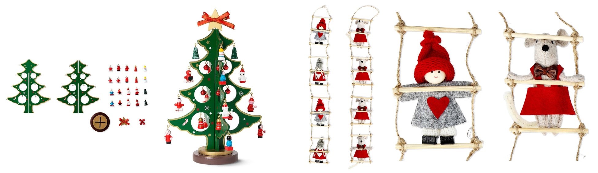 高さ28cmの木製のツリーとオーナメントのセット。玄関や窓辺に飾るだけで、クリスマスのあたたかい雰囲気を演出してくれます。