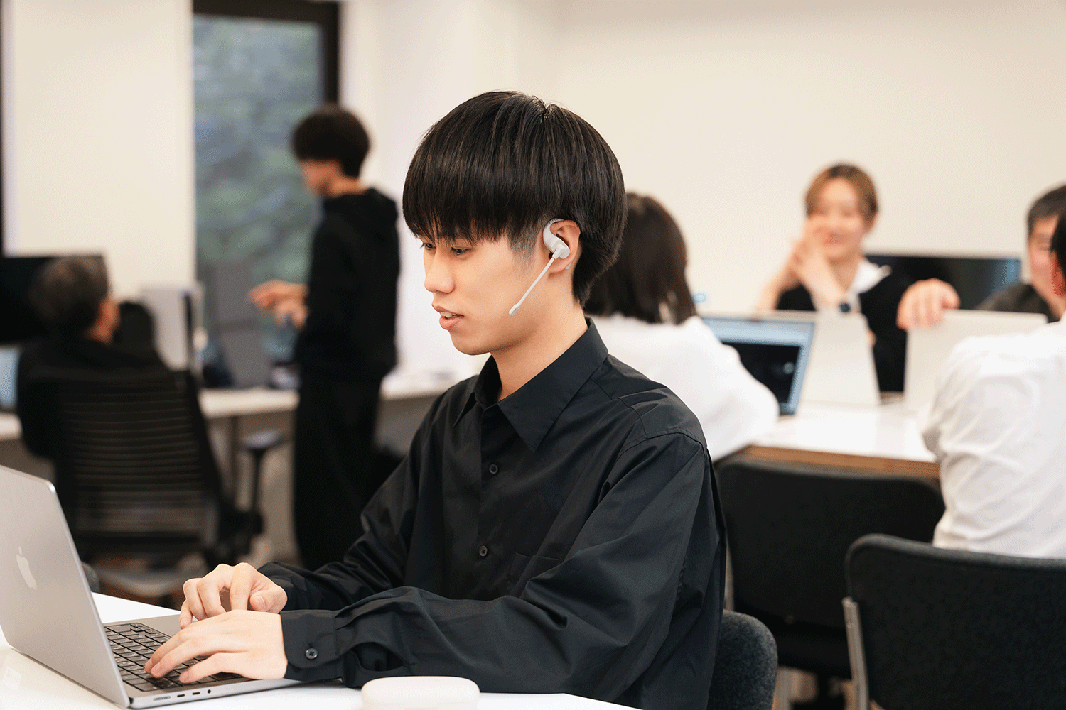 本製品は、高性能な「AIノイズバリアマイク」と付属のブームマイクで、周囲の環境音を強力に抑制します。これにより、周りの声が気になる騒がしいオフィス・カフェ、出勤時間帯の混雑した駅、または子どもや愛犬などの他の生活者がいるリビングなどで、例え真横で話している人がいたとしても、通話やオンライン会議の相手には背景のノイズはほとんど聞こえず、まるで静かな場所から話しているかのように、あなたの「声だけ」を正確に伝えることが可能です。